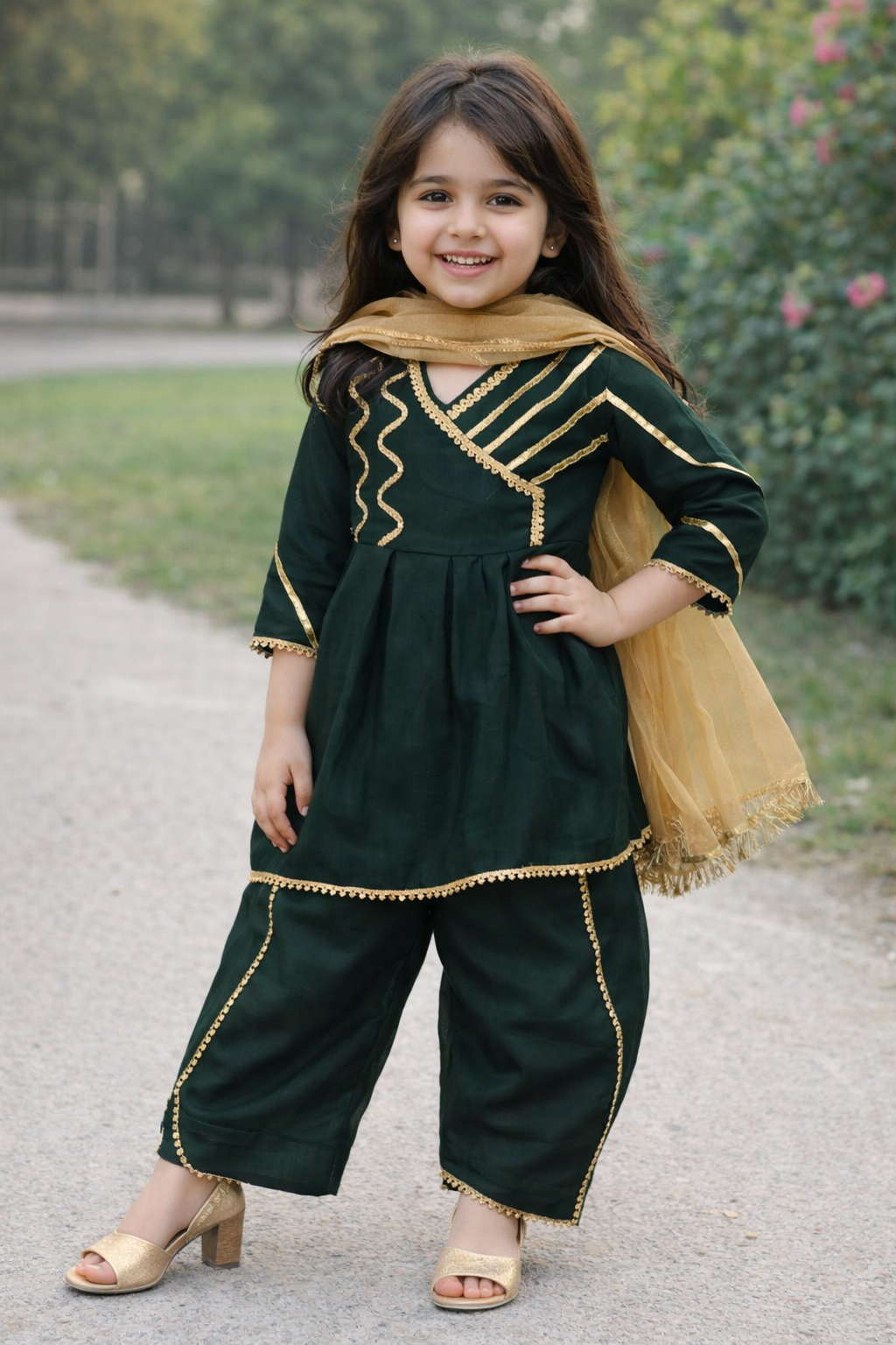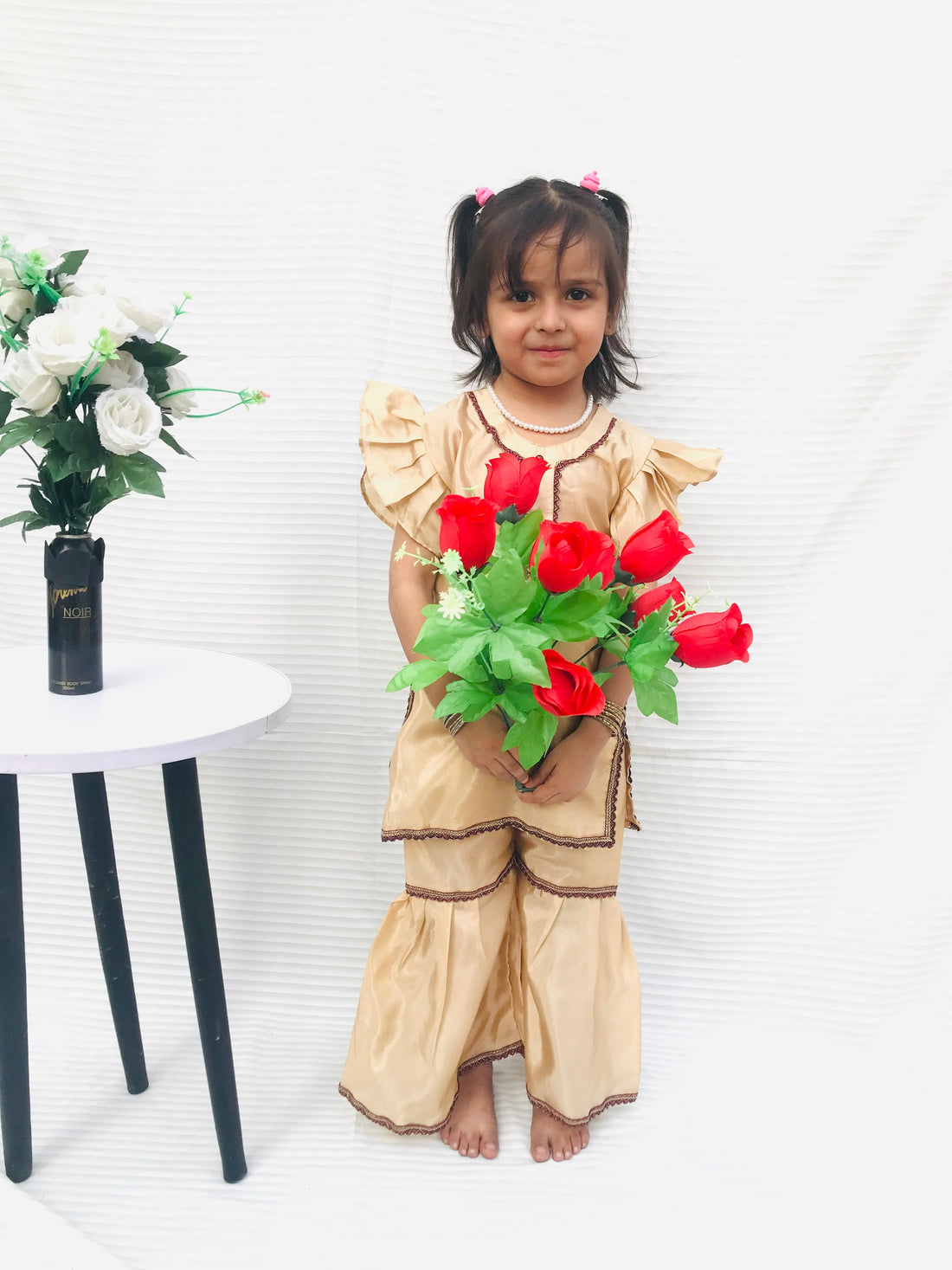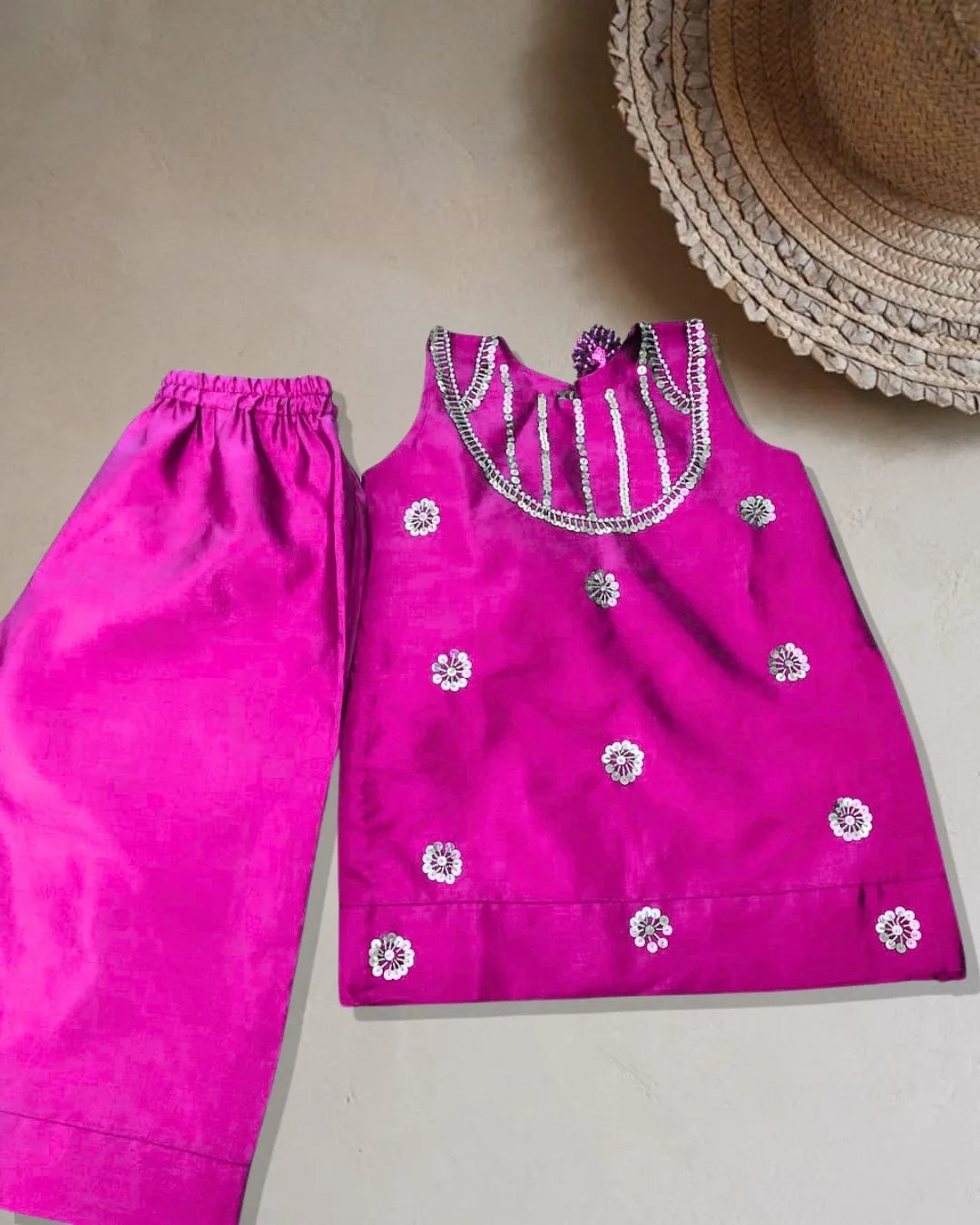 The Gul-e-Roshni Set is a beautiful and soft outfit for little girls, perfect for parties and family gatherings.