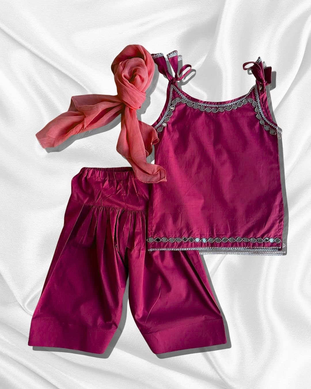 This red short shirt is beautifully adorned with delicate embroidery and elegant lace detailing, adding...